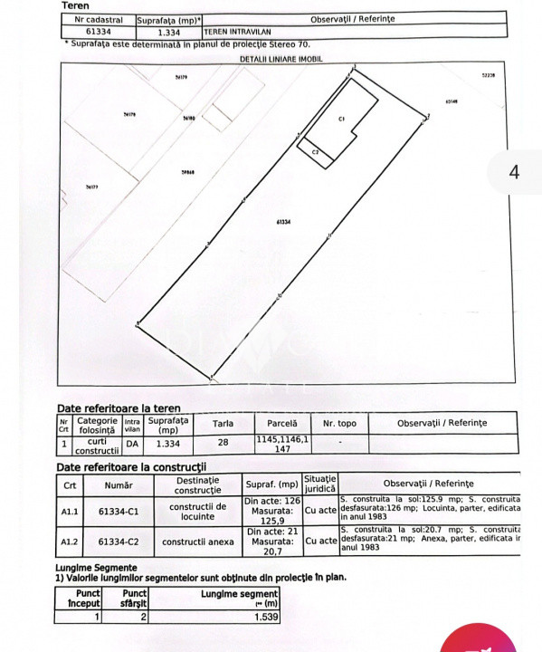 Suprafață teren: 1334 mp